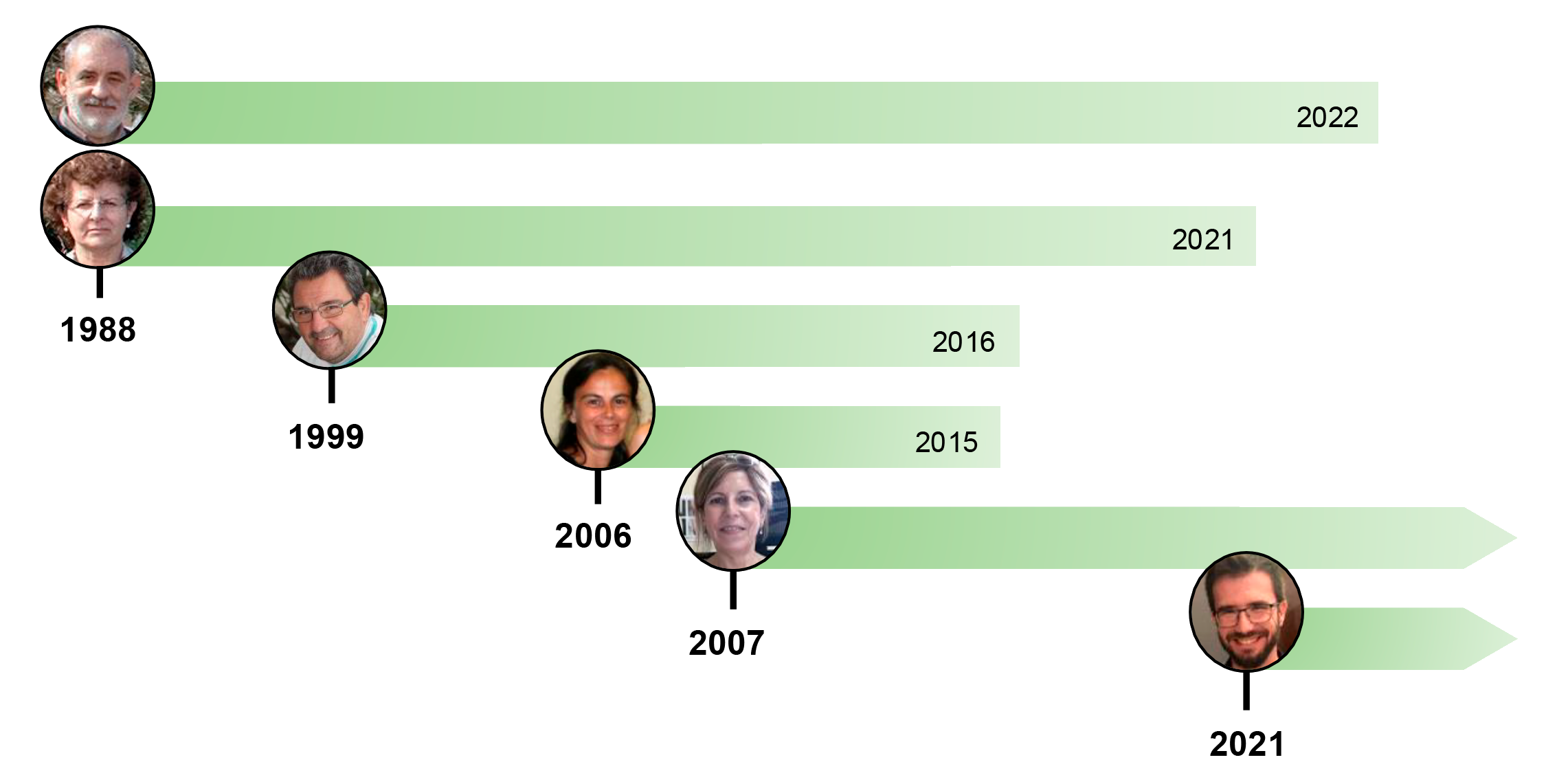 The research group was founded by the Chemists Javier Abadía and Anunciación Abadía in 1988. The group has focused its research in studying the physiological mechanisms that plants elicit in response to environmental stress, including both scarcity and toxicity of metals (iron, manganese, etc.) as well as other abiotic stresses, such as salinity or drought. Always in the technical vanguard, the group started off by using chlorophyll fluorescence, high performance liquid chromatography and elemental analysis, later pioneering the application of cutting-edge mass spectrometry to Agricultural Sciences, including metabolomics and proteomics approaches. In 1996, the former PhD student of the group Fermin Morales (1988-1992), joined back after a post-doctoral stay in the University of Paris-Saclay. He introduced the application of remote sensing to study the effects of environmental stresses in agriculture, until he started off his own group in the Agrobiotechnology Institute (IdAB, CSIC- Navarra Government) in 2016. In 2006, another former PhD of the group, Ana Flor López-Millán (1996-2000) joined as staff scientist after a post-doctoral stay at the CNRC-USDA. She led proteomics section of the research group, and now is currently on personal leave since 2015. Ana Álvarez-Fernández joined the group as a post-doctoral researcher in 2001 after getting her PhD in 2000 in Autonomous University of Madrid, under the supervision of Prof. Juan José Lucena, an expert on micronutrient fertilizers, becoming staff scientist in 2007. Since then, she has taken the lead on spearheading the application of Mass Spectrometry and Metabolomics to Agricultural Sciences. In 2021, Anunciación Abadía retired and Jorge Rodríguez-Celma, a former Ph D student of the group (2007 - 2012), joined as staff scientist after two postdocs in the labs of experts on iron nutrition in plants, Janneke Balk (John Innes Centre & University of East Anglia) and Wolfgang Schmidt (Academia Sinica) followed by one year in the biomedical industry (Certest Biotec). Jorge started his research line using cutting edge molecular biology tools to study the regulation of iron homeostasis in plants.